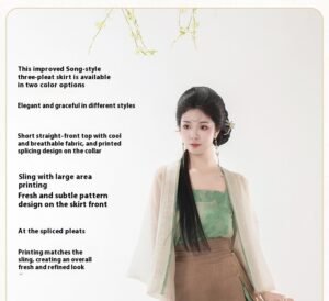 Purple Three-Piece Set (Modified Short Blouse + Song Dynasty-Style Collar + Sanjian Skirt), Green Three-Piece Set (Modified Short Blouse + Song Dynasty-Style Headband + Sanjian Skirt)