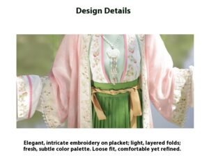 Colour (Pink Four-Piece Set) Strapless top + cropped shirt + modified Song-style robe + green pleated skirt, (Yellow Four-Piece Set) Strapless top + cropped blouse + modified Song-style robe + red pleated skirt Size Small size (150cm–164cm), Plus size (165cm–175cm) 评价 目前还没有评价 成为第一个“【Flower Gathering】Song Dynasty Style Front-Closure Hanfu Women’s Intricately Embroidered Long Robe – New Original Ensemble” 的评价者取消回复您的邮箱地址不会被公开。 必填项已用 * 标注您的评级 * 评价… 完美 很好 普通 还行 极差 名称 *邮箱 *您的评价 * 在此浏览器中保存我的显示名称、邮箱地址和网站地址,以便下次评论时使用。 提交